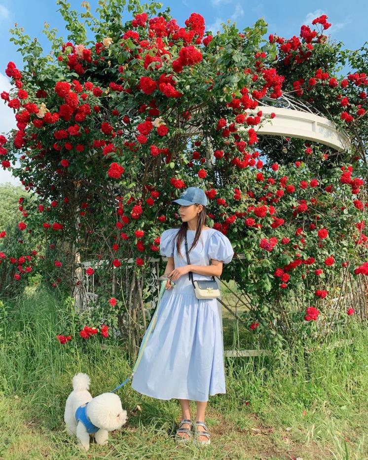 러블리한 기은세의 매력을 한층 더 뽐내 주는 블루 컬러의 퍼프 소매 원피스를 픽해 블루 볼캡과 샌들의 조합으로 캐주얼 하면서 여성스러운 스타일링을 완성! 퍼프 소매는 상체가 마른 체형을 보완해 주면서 우아하고 여성스러운 느낌을 준다. 플라워 패턴이나 슬리브리스, 슬립 드레스가 부담스럽다면 기은세처럼 뉴 스포티즘 룩을 즐겨보자!