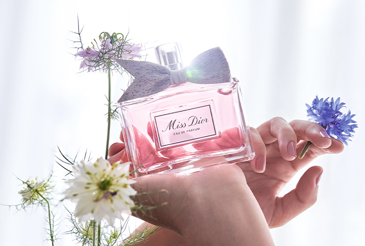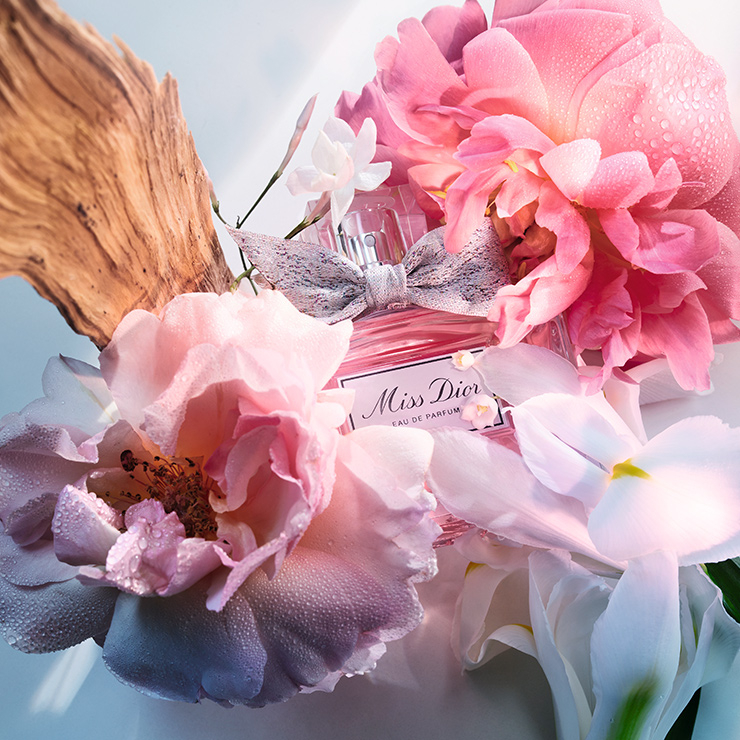 미스 디올 오 드 퍼퓸의 센슈얼한 플로럴 부케 향기는 모든 감각을 일깨웁니다. 싱그러운 은방울꽃과 스파이시한 피오니가 장미의 벨벳처럼 부드럽고 센슈얼한 매력을 끌어내고 나면, 파우더리한 아이리스가 향기를 한층 더 풍성하게 피워냅니다.