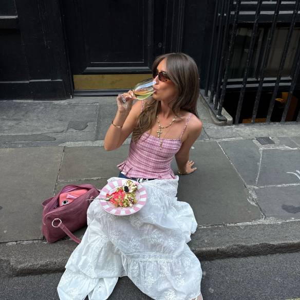 핑크컬러의 퍼프 반팔 니트와 ‘블랙 체크 롱스커트’를 함께 매치한 한선화. 스커트가 길기 때문에 활동하기에 부담이 적어 올 가을 트렌드인 편안함과 잘 어울리는 아이템이다. 한선화처럼 베이직한 느낌의 체크 패턴 롱스커트를 고르고 컬러 포인트가 되는 상의를 매치해도 좋고, 상의는 최대한 심플한 디자인을 매치하고 패턴이 돋보이는 롱스커트로 포인트를 주는 것도 좋다. 이때 슈즈의 컬러를 스커트의 컬러와 통일시킨다면 다리가 더 길어 보이며 안정감 있는 스타일링을 완성할 수 있다.