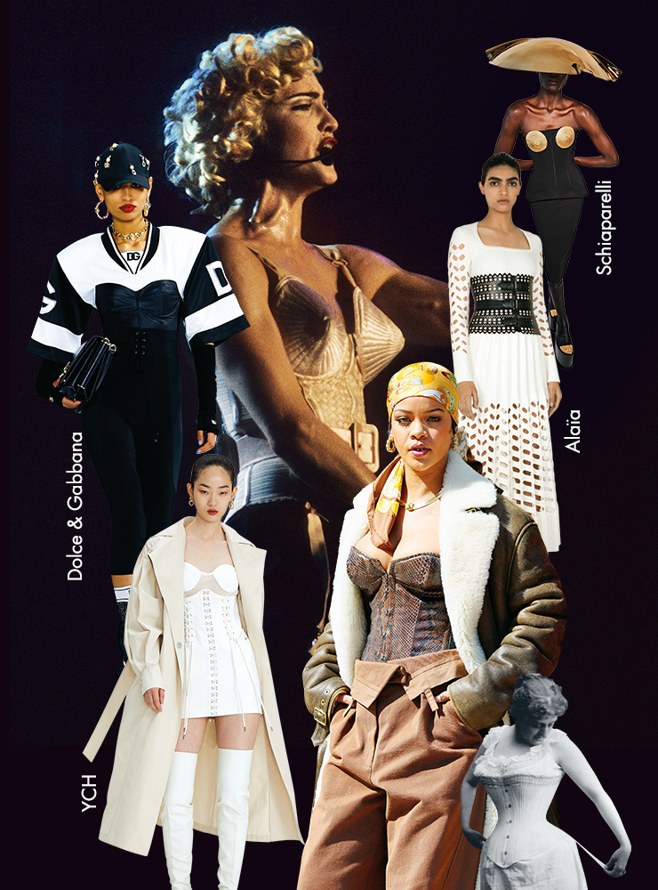 ✔ 개미허리를 만들던 코르셋이 아니다. 스스로의 멋을 창조하고 보여주기 위한 도구가 된 코르셋! ✔ 런웨이부터 리얼웨이까지 구석구석 물든 코르셋 실루엣의 당당함과 관능미. ✔ 스타일의 경계가 무너지면서 코르셋 역시 가부장적 유물이나 페티시적 요소가 아니라 하나의 아이템으로 인식되고 있다.
