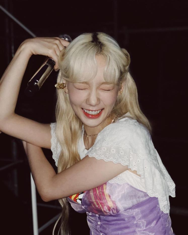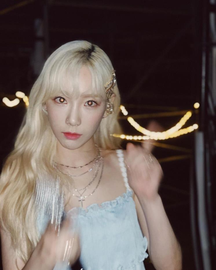 한쪽 콧방울 위에 작은 큐빅 피어싱으로 포인트를 준 태연. 그의 밝은 헤어 컬러가 코 피어싱과 만나 신비로운 매력을 자아낸다. 특히 태연의 코 피어싱이 유독 빛을 발하는 것은 바로 무대 위. 입자가 굵은 글리터 메이크업과 함께 스타일링하면 조명 아래 더욱더 반짝인다.