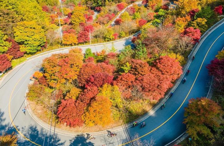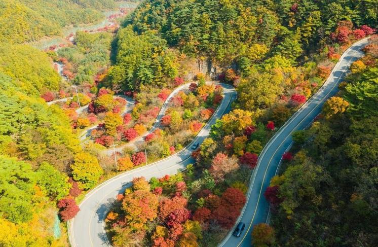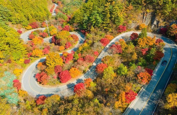 단양군 가곡면 보발리와 영춘면 백자리를 잇는 고갯길인 단양 보발재. 옛날 고개 스타일로 운전하기는 까다롭겠지만, 언덕에 따라 달라지는 드라마틱한 단풍 뷰는 놓칠 수 없는 즐거움을 선사한다고. 특히 이번 주 완전 절정을 이뤘는데, 짧다면 짧은 3km의 단풍 코스는 카트라이더가 떠오를 정도로 구불구불한 코스. 언덕을 따라서 오르면 끝에 전망대에서 한눈에 바라보는 이 드라이브 코스는 빼놓을 수 없는 단풍 구경.