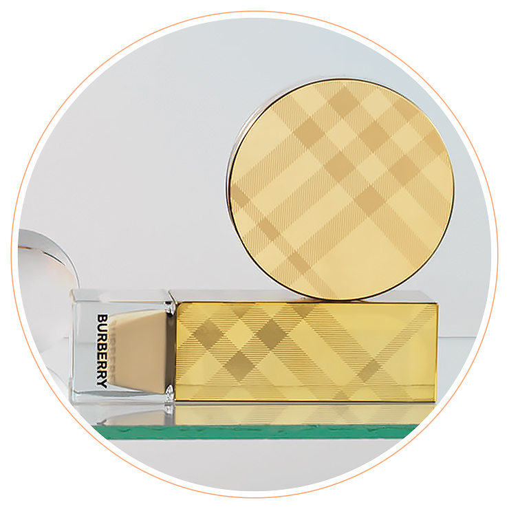 블링블링 골드 체크 패턴 패키지로 화려하게 다시 돌아온 버버리 뷰티. 스킨케어 효과를 그대로 담은 쿠션과 세럼 타입의 파운데이션 모두 견고하고 얇게 발려 윤광 베이스를 완성시킨다.