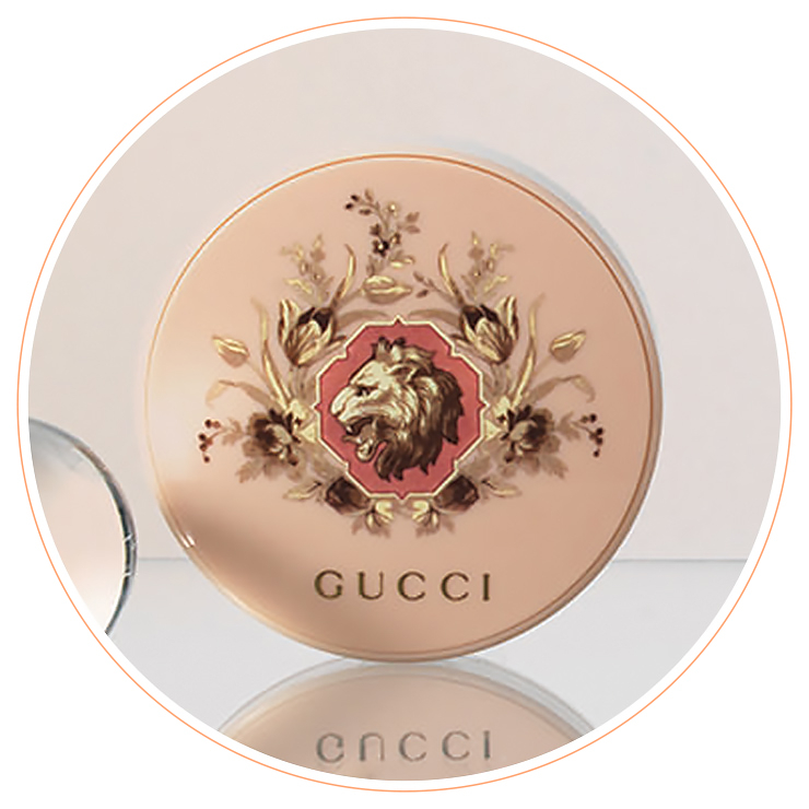 패션 신을 뒤흔들 만큼 개성 강한 구찌 신드롬의 갬성이 이번 신상에도 반영됐다. 빛바랜 핑크 컬러 위로 수놓은 플라워 리스와 사자 그림이 그려진 케이스는 힙 그 자체! 런웨이 속 모델들의 꾸안꾸 베이스 역시 쿠션 팩트 하나면 충분하다.