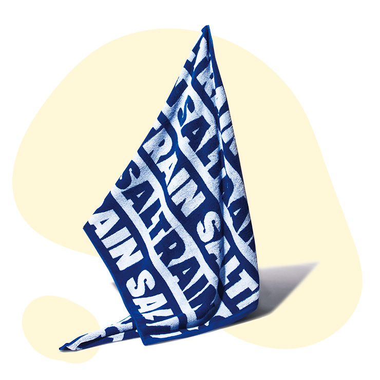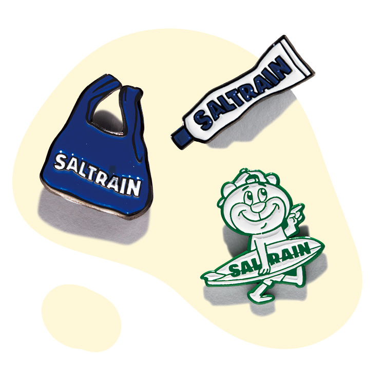 SNS에서 한 번쯤 봤을 힙한 패키지의 치약과 칫솔을 판매하는 솔트레인. 치약 브랜드라고는 생각 못 할 만큼 다양한 굿즈를 보유하고 있다. 한 번 보면 잊히지 않는 블루블루한 로고와 캐릭터로 도배된 마스킹 테이프부터 옷, 가방 등에 포인트를 줄 수 있는 핀 배지, 볼드한 로고 프린팅이 시강인 비치 타월까지! 찐 굿즈 맛집으로 인정합니다~.