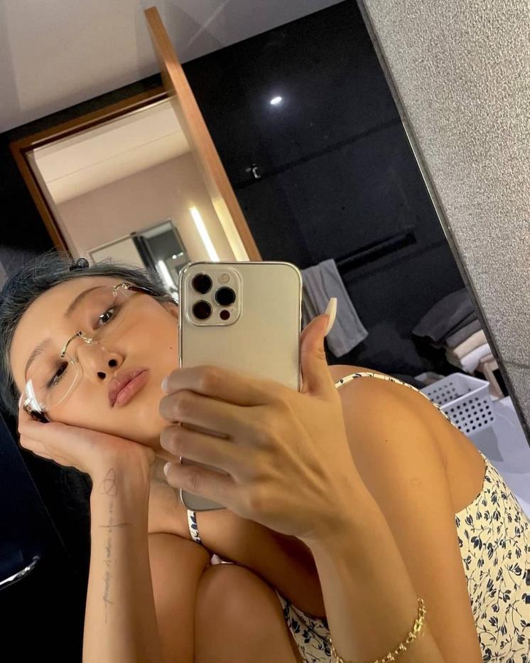 화사는 슬리브리스 드레스에 림리스 안경, 일명 무테안경을 매치해 ‘힙’한 y2k 패션을 완성했다. 림리스 안경은 테가 아예 없어 장시간 착용해도 가벼운 장점이 있지만, 렌즈를 보호해주는 프레임이 없어 망가지기 쉽기 때문에 던지지 않는 등 관리에 유의해야 한다는 점을 기억하자.