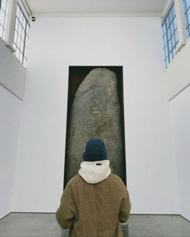 한국의 추상화 작가 윤형근의 소문난 덕후 RM. 지금 윤형근 전시가 열리고 있는 치나티 파운데이션은 미니멀리즘 작가인 도널드 저드가 설립한 곳이다. 도널드 저드의 디자인이 들어간 건축물 안에는 도널드 저드의 작품에 어울리는 공간에 작품을 두고 있다.