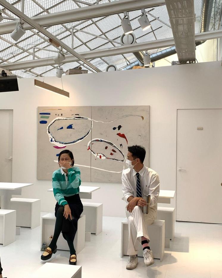 명불허전 패션 아이콘 ‘김나영’이 이혼 후 처음으로 공식 인정한 남친은? 싱어송라이터이자 화가인 ‘마이큐’! 마이큐의 전시회 사진을 올리거나 서로의 SNS에 좋아요를 누르는 등 럽스타그램으로 애정을 드러내기도 했다고! 마이큐의 인스타를 보다 보면 어딘가 익숙한 코디법들이 눈에 들어오는데, 김나영의 일상 스타일과 매우 닮아 있다는 사실! 평소 아이보리나 베이지처럼 부드러운 톤에 팝한 컬러 포인트를 더하는 것을 좋아하는 김나영. 마이큐 역시 형광색의 톱이나 모자, 스니커즈 등을 데님, 슬랙스 등 클래식한 아이템과 매치하는 코디를 즐긴다.