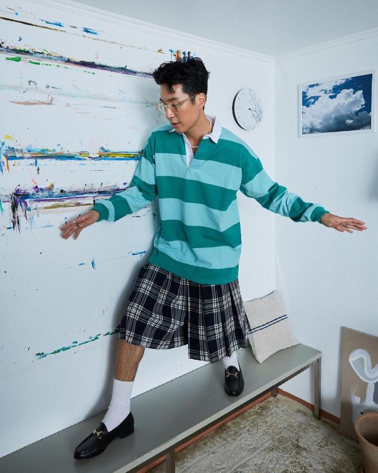 다채로운 컬러의 폴로셔츠는 커플템으로 찰떡! 김나영의 폴로셔츠 사랑 못지않게 마이큐 역시 레트로 풍의 폴로셔츠를 즐겨 입는다. 이 커플의 시그니처 컬러가 ‘그린’이라고 할 만큼 싱그러운 컬러의 아이템을 좋아하는 김나영과 마이큐! 녹색의 톤온톤 스트라이프 폴로셔츠와 미디 스커트로 빈티지한 시밀러룩을 완성했다. 특히 마이큐는 체크 패턴의 플리츠 스커트를 입어 젠더리스 룩을 멋지게 소화했다.