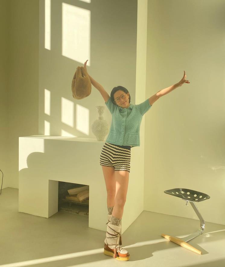 마이큐가 뉴 패셔니스타로 떠오르는 이유는 클래식과 스포티즘을 적절하게 믹스매치하기 때문! 그린 컬러의 두툼한 니트 톱에 나이키 쇼츠를 매치하고, 클래식한 골드 테 안경에 스포티 삭스를 조화롭게 스타일링하는 센스를 보여준다. 김나영 역시 그린 톤의 니트 셔츠에 귀여운 스트라이프 패턴 쇼츠, 거기에 커플템 느낌 낭낭하는 골드 테 안경으로 클래식과 스포티즘 사이의 경계를 허문 코디를 완성했다.