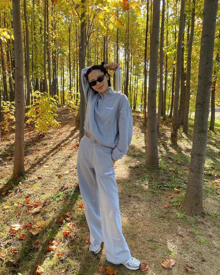 육아와 워커홀릭 모두 완벽하게 해내는 그녀는 편안한 애슬레저 룩을 즐겨 입는다. 그레이 컬러의 스웨트 셋업에 스포티한 스니커즈를 매치해 데일리한 애슬레저 코디 완성! 마이큐 역시 그레이 컬러의 스웨트 조거 팬츠와 시어링 후디, 거기에 화이트 스니커즈를 레이어드해 편안하지만 스타일리쉬한 데칼코마니 룩을 연출했다. 비슷한 아이템에 아우터나 모자로 포인트를 더하면 부담스럽지 않게 스타일리쉬한 커플 운동룩을 연출할 수 있다.