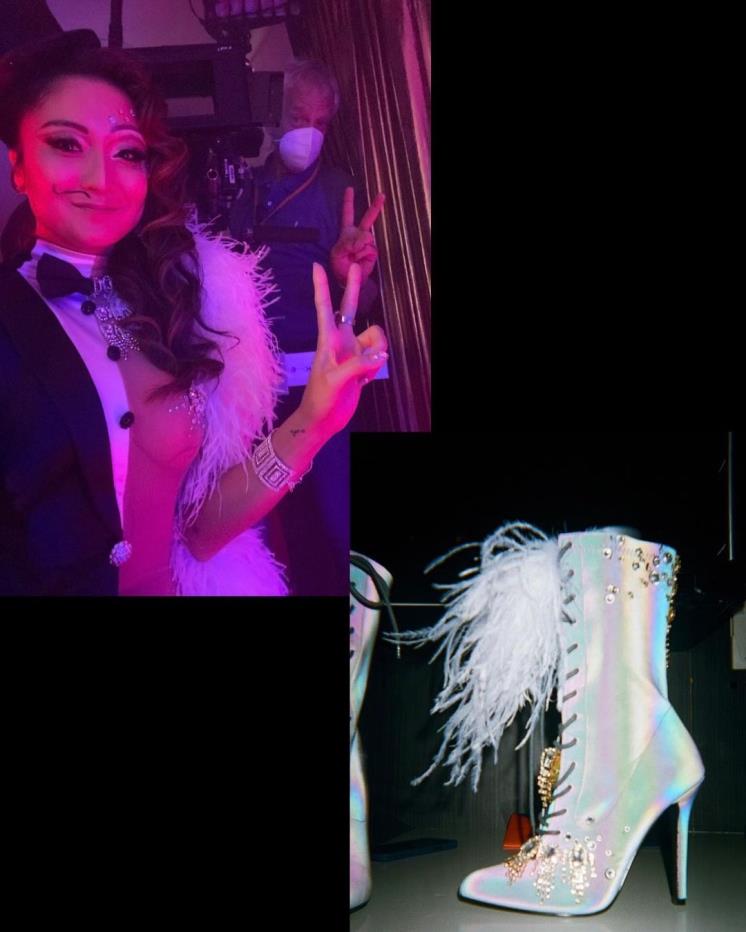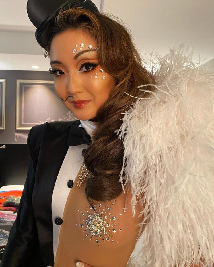 프랑스어로 dame pipi는 공중화장실 여자 관리인. 꿈의 시작은 담 피피일지라도 BTS ‘다이너마이트’를 멋지게 성공하는 민디. 그때 그가 입은 남녀 반반 섞인 의상은 가히 파격적이다. 금방이라도 트렌스젠더 쇼에서 튀어나온 듯한 비주얼의 의상! 또 메이크업 디테일까지 더해져 더욱 완벽하다. 방탄소년단의 노래를 함께해 국뽕이 차오르는 모먼트가 아닐 수 없다.