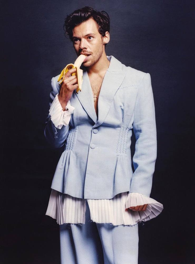 콧수염과 깃털 스카프가 공존하는 해리 스타일스의 룩. 그의 특기는 젠더리스 룩을 천연덕스럽게 구현하는 것이다. 해리가 자유로운 취향을 본격적으로 드러내기 시작한 건 원 디렉션 이후 솔로 활동 때부터였다. 진주 목걸이 같은 액세서리로 시작해 반짝이는 슈트, 컷아웃 톱 등 점점 더 과감한 룩을 선보이더니 최근 네일 폴리시 브랜드도 론칭했다. 해리의 매력이 가장 돋보였던 때는 2019 멧 갈라 포토콜. 화려하게 치장한 셀렙들 사이에서 올 블랙 시스루 룩을 입고 레드 카펫에 올랐는데, 생얼 같은 얼굴과 태연한 미소에서 풍기는 여유로움으로 모두를 매료시켰다. 화려한 차림의 남성을 드라마 속 게이 캐릭터처럼 여기는 시선에 통쾌한 한 방을 날린 순간! 이런 무덤덤함이 해리 룩을 완성하는 비법이다. Harry Styles: 과감한 룩, 무덤덤한 애티튜드