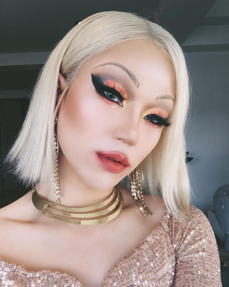 드랙 아티스트들의 서바이벌 오디션 프로그램 ‘루폴의 드래그 레이스’ 시즌 8에 참가해 최종 3위 성적을 거둔 한국계 드랙 아티스트 김치. 세계적으로 활동 중인 김치의 메이크업은 경이로운 수준. 한 때 일본에서 유행했던 갸루 혹은 야맘바 메이크업이 떠오르는 스타일이다. 아이홀 뿐 아니라 언더까지 넓은 영역을 칠한 아이 섀도우 그리고 아웃 라인을 딴 립이 돋보이는 메이크업이다.