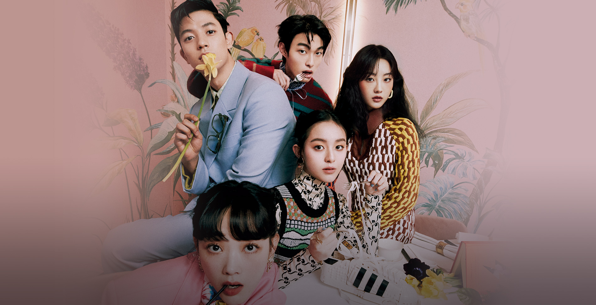 (시계 방향으로) (로몬)재킷, 팬츠 모두 가격미정 산드로 옴므. 셔츠 가격미정 코치. 니트 톱 14만4천원 영오. 선글라스 28만원 젠틀몬스터. (윤찬영)니트 톱 83만원 폴스미스. 셔츠 75만원 플랜씨 by 비이커. (조이현)드레스 가격미정 토즈. 귀고리 스타일리스트 소장품. (박지후)베스트 가격미정 산드로. 터틀넥 45만8천원 토리버치. 반지 가격미정 디올. 귀고리 스타일리스트 소장품. (이유미)재킷, 귀고리 모두 가격미정 미우미우. 니트 톱 57만원 겐조. 블라우스 50만원대 가니.