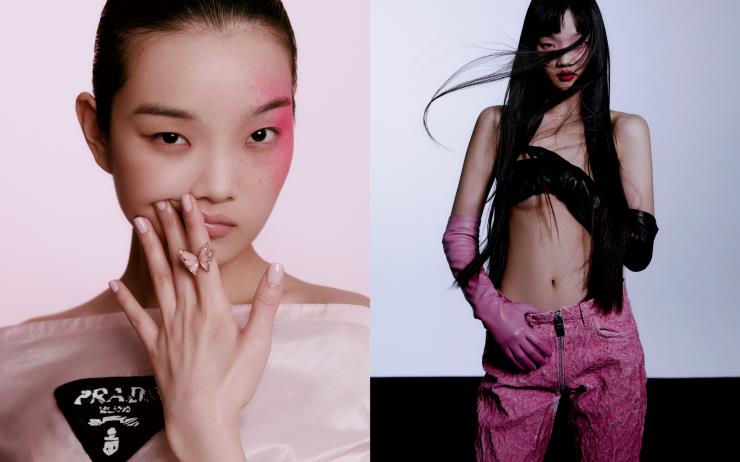 레이디 스타더스트 이어링 2천2백만원대, (왼손 검지)쏜 닷 링 2천7백만원대 모두 스티븐 웹스터. 비제로원 펜던트 네크리스 7천1백만원대, (오른손) 비제로원 뉴 웨이브 3밴드 링 6백만원대 모두 불가리. (왼손 약지)LV 볼트 링 5백72만원 루이 비통 파인주얼리. 메탈 브라톱, 가죽 팬츠 모두 가격미정 아임 카밀라.
