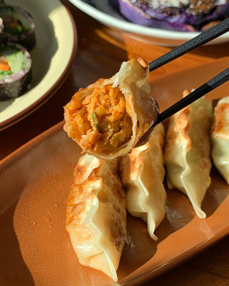 먼저 만두 본연의 맛을 살리기 위해 만두를 쪄보았다. 찜기에서 꺼내자마자 느낀 건 만두 특유의 냄새가 잘 나지 않는다는 거다. 어떤 맛일지 궁금해하며 베어 문 첫입의 소감은 ‘신기하다’였다. 고기를 넣은 듯한 맛이 나는데 고기의 텁텁한 느낌은 없어서 담백하게 맛있었다. 왕교자와 같이 출시된 김치 왕교자는 만두소에 채소들과 청양고추, 마늘이 알맞게 들어가 칼칼함이 살아 있었다.