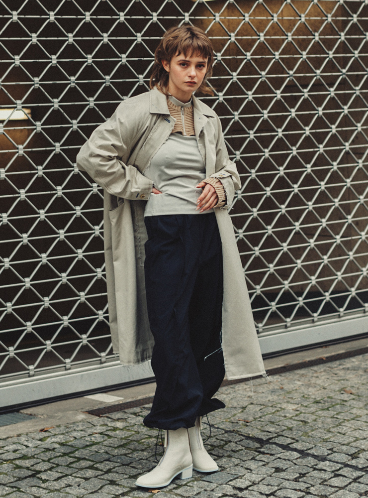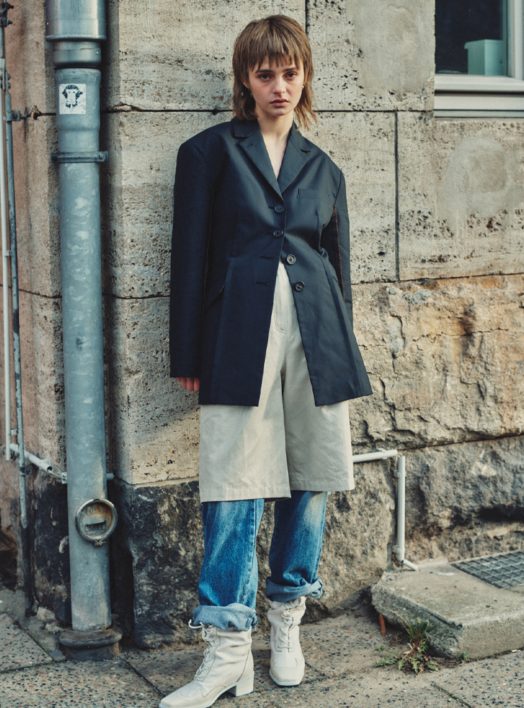 채도가 빠진 듯한 유럽 도시의 이미지를 좋아해요. 브랜드 디렉터로서 제가 가장 좋아하는 문화와 도시, 이미지가 무엇인지 계속 고민하게 되는데, 저는 역시 베를린이에요. 유럽의 도시 중에서도 가장 칙칙하고 우울하죠. 그래서 S/S 시즌이지만 룩북도 굳이 차가운 느낌으로 촬영했어요. 날이 따뜻하다고 꼭 밝은 분위기여야 할 필요는 없잖아요? 저라는 사람 자체가 여름이라고 스윔웨어에 관심을 갖는 타입은 아니어서요.
