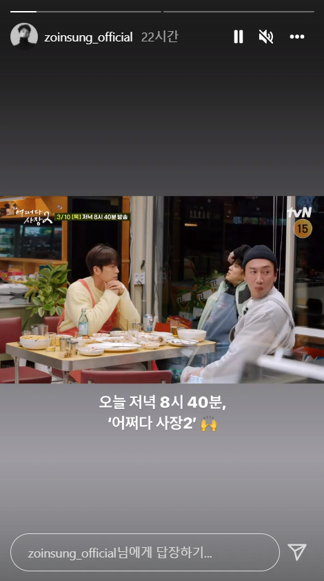 피드 뿐만 아니라, 그는 ‘스토리’ 기능도 활발하게 사용하는 편! ‘어쩌다 사장2’ 영상본을 종종 올리며 본인이 출연한 프로그램을 적극적으로 홍보하는 모습이다. 칭찬해!