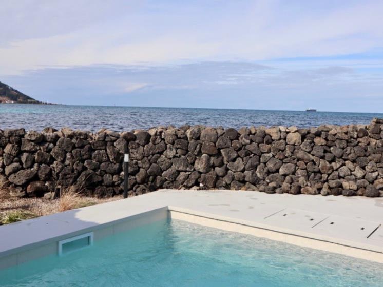 소소하지만 귀여운 요소가 가득한 작은 주택인 편백채. 마당에서 보이는 작은 주택들 사이의 바다와 거실에 있는 따뜻한 코타츠. 그리고 우드톤으로 편안한 분위기에서 쉴 수 있는 침실은 편안한 휴식을 보장한다. 그리고 사람들이 가장 편백채를 좋아하는 이유는 바로 실내의 자쿠지. 작은 수영장 같은 규모의 자쿠지는 또 다른 추억을 만들 수 있는 요소다. 자쿠지는 가족이 들어가서 물놀이를 즐길 수 있을 정도로, 편백채의 규모에 비해 든든하다. 돌담이 고즈넉하게 둘러 싼 마당에서는 캠프파이어는 물론 바비큐도 즐길 수 있다.