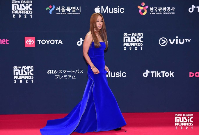 2021 MAMA에서 최초의 여성 게스트, 스우파 멤버들과의 화려한 무대로 또 한 번 모두를 깜짝 놀라게 했던 효리 언니. 레드 카펫에서는 카펫과 대비되는 진한 블루 드레스로 이목을 집중시켰다. 우아한 무드의 블루 드레스는 오프화이트 제품.