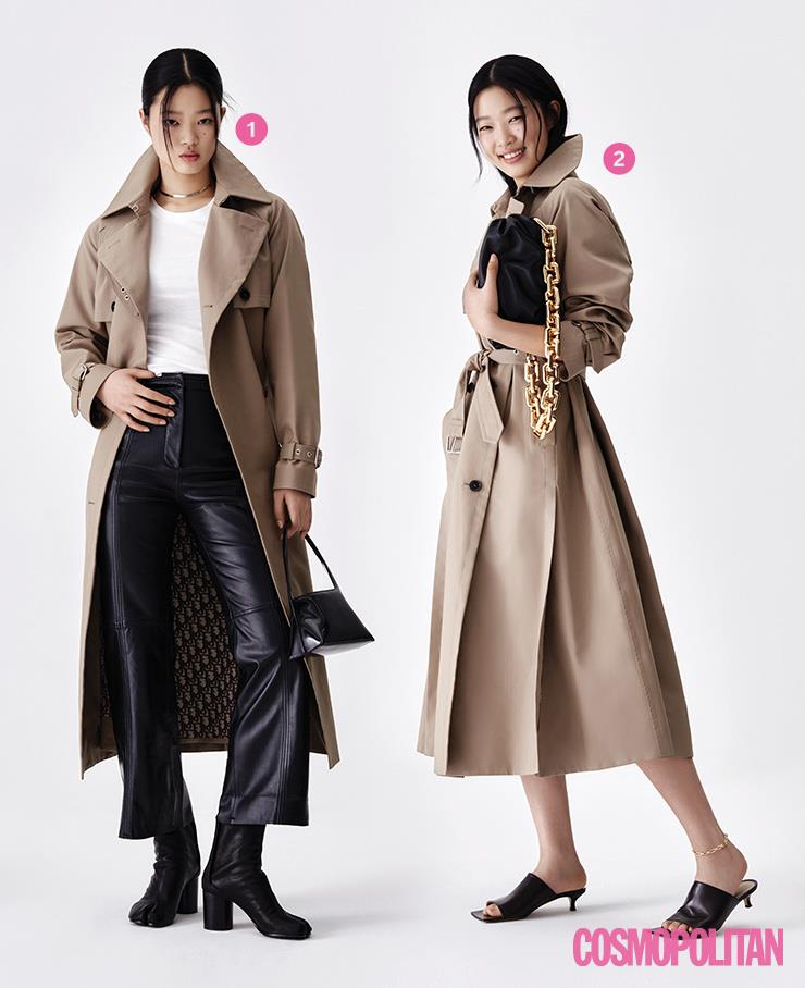 싱글브레스티드 트렌치코트에 가죽 벨트를 둘러 드레스처럼 연출해보자. 액세서리를 이용해 아이템을 다양하게 연출하는 것은 진짜 멋을 아는 패션 피플들만 즐길 수 있는 고도의 스타일링이다. 벨트 5만9천원 유르트. 미니 백 91만5천원 JW 앤더슨. 샌들 11만9천원 앤아더스토리즈.