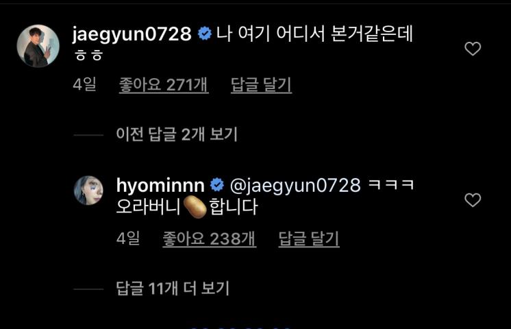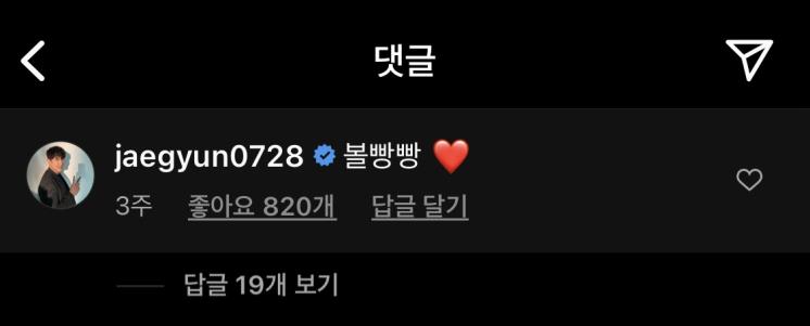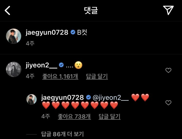 이번엔 황재균의 인스타그램 속 댓글을 살펴보자. 황재균은 2월 18일 한 화보촬영의 B컷 사진을 공개했는데, 이에 아무런 문구 없이 이모티콘만 남긴 지연에 하트폭발 대 댓글을 달아 지연바라기의 면모를 또또또 인증했다.