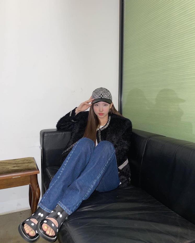나연은 화려한 로고플레이의 볼캡을 선택했다. 상의는 깔끔한 블랙으로 통일하고, 도트 무늬가 있는 부츠를 매치해 일명 ‘선택과 집중’ 패션을 보여줬다. 로고 플레이 볼캡 하나만으로도 남다른 스타일을 완성 SSAP 가능!