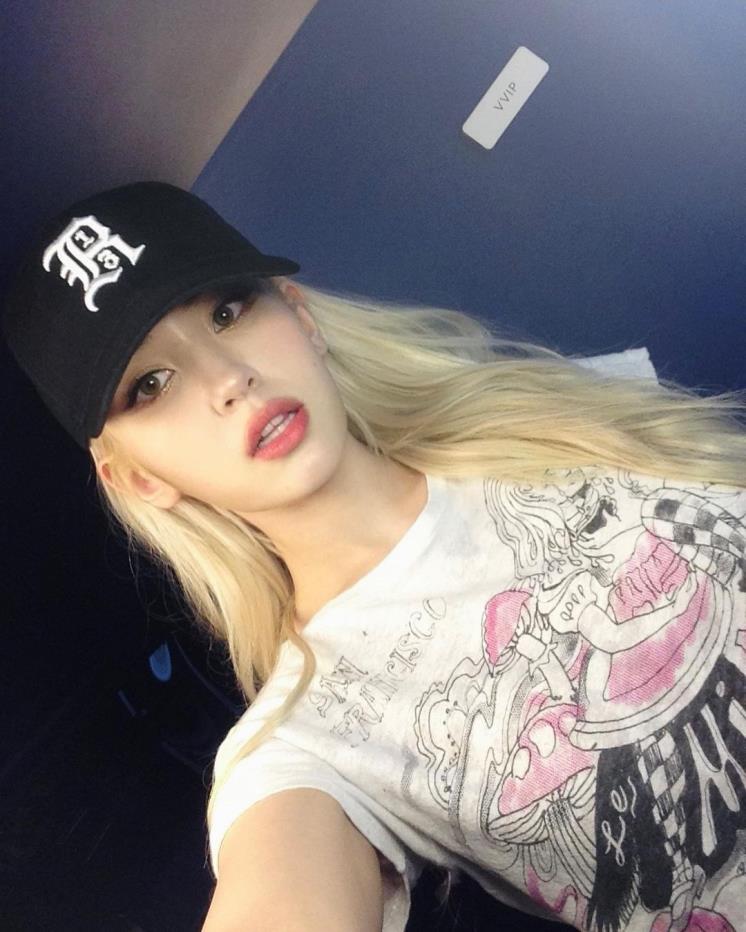 볼캡의 정석을 선택한 전소미. 가운데 크게 로고가 들어간 볼캡으로 스트릿 무드가 물씬 풍기는 스타일을 완성했다. 여기에 프린팅 티셔츠까지 함께 해주면 머리 안 감은날 시도하기 좋은 꾸안꾸룩이된다구!