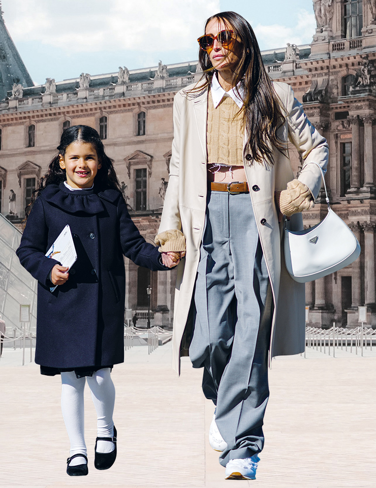 엄마도 얼마든지 쿨할 수 있다! 딸과 함께 컬렉션에 참석한 패션 컨설턴트 클로에 하루슈. 크롭 톱에 도전하고 싶은데 왠지 부담스럽다면 그녀처럼 하이웨이스트 팬츠를 매치할 것. Chloé Harrouche