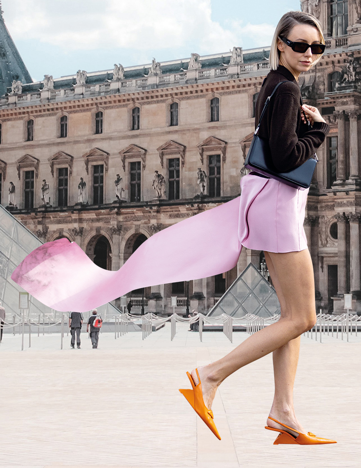 독일의 인플루언서 나탈리 오스만은 길게 늘어진 스커트 자락을 바람에 휘날리며 프라다의 컬렉션 룩을 완벽하게 소화했다. Nataly Osmann