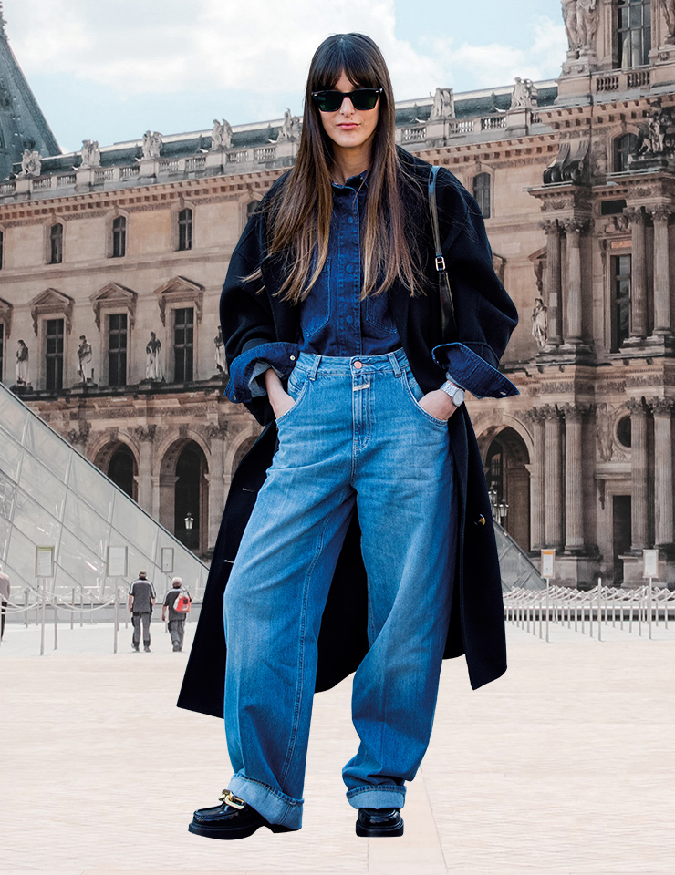 패션 위크에는 화려하고 드라마틱한 옷만 입어야 한다는 편견은 버려라. 레이아 스페즈는 핏 하나로 멋진 데님 룩을 완성했다. 무심한 듯 시크한 파리지엔의 정석! Leia Sfez
