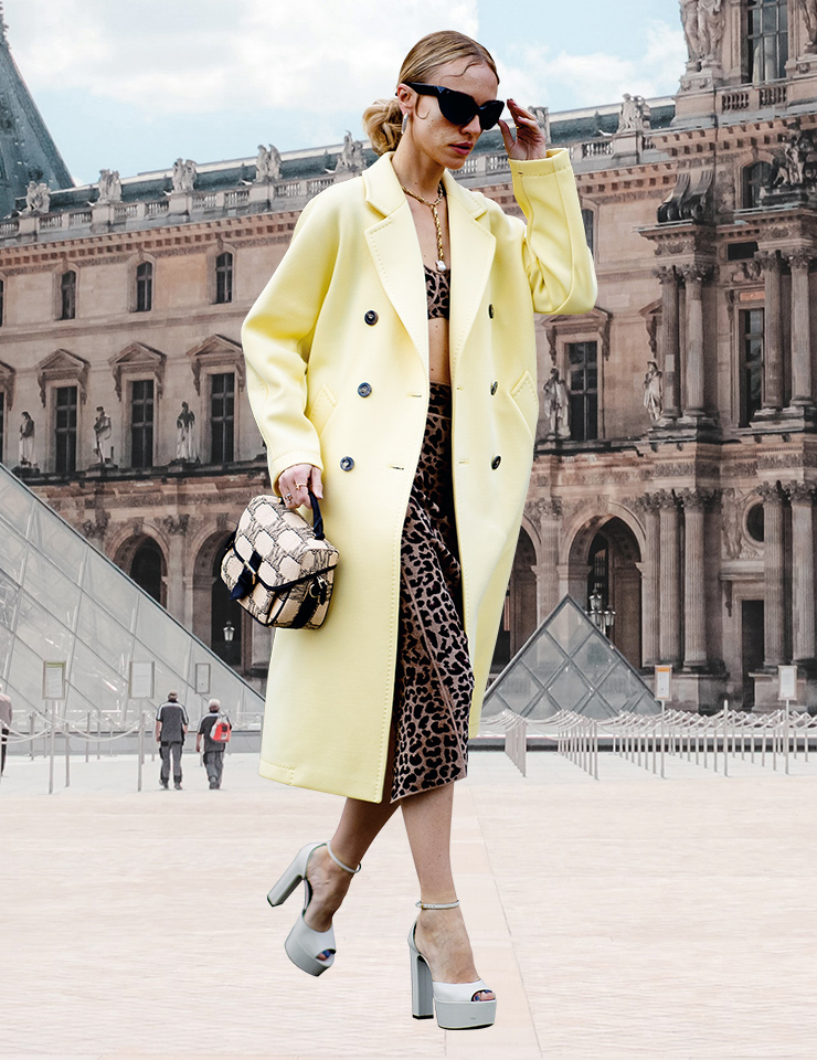 레오파드 패턴을 보다 부드럽게 연출하고 싶다면 빅토리아 레이더의 룩을 참고하자. 상큼한 레몬 컬러 코트를 선택해 우아한 멋을 더했다. Victoria Rader