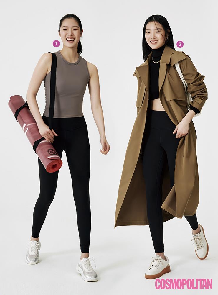 요가 톱과 팬츠를 데일리 룩으로 완벽하게 변신시킨 드레싱. 보디라인이 아름답게 드러나는 요가 웨어는 은은한 우아함마저 느껴진다. 그렇기에 요가 스튜디오에서 입던 룩에 슈즈만 바꿔줘도 우아한 애슬레저 룩을 완성할 수 있다. 시크하고 싶다면 부츠를, 사랑스러움을 더하고 싶다면 발레리나 플랫을 매치해보자.
