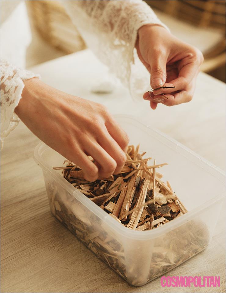 소식에서는 ‘속세의 사찰 음식’을 표방했는데, 사람들이 흔히 생각하는 ‘사찰 음식’의 틀에서 벗어나기가 쉽지 않았죠. 천년식향은 ‘천년 동안 이어가고 싶은 요리의 방향’이라는 뜻이에요. 자연이랑 연결된 요리를 하고 싶었어요. 제가 가장 좋아하는 색이 우드 톤, 베이지예요. 매장의 가구와 데커레이션으로 쓰는 나뭇가지도 모두 직접 골랐어요.