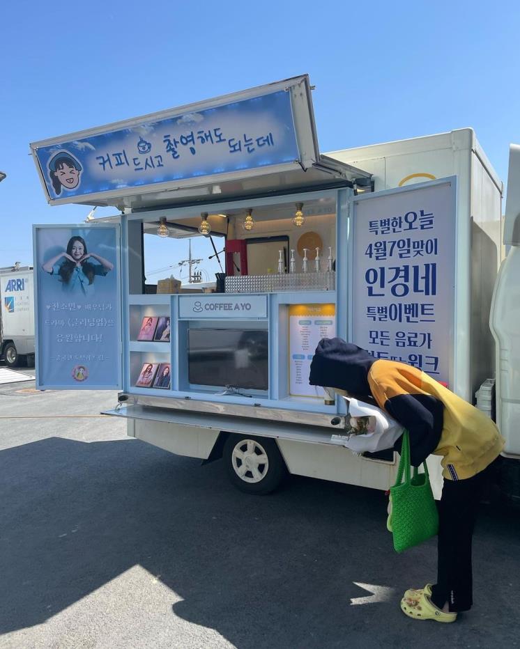 얼마 전 생일 맞이 커피차를 받아 감사 인사를 전한 전소민. 예의 바른 그녀의 모습 속 귀여운 아이템들이 눈길을 사로잡는다. 알록달록한 후드티, 상당수의 지비츠로 꾸며 놓은 크록스 그리고 마지막 쨍한 그린 컬러의 니팅 백까지. 귀여운 아이템만이 선택받을 수 있는 스타일링이다. 심지어 니팅 백에는 인형 뒷모습까지 더해져 귀여움이 2배!