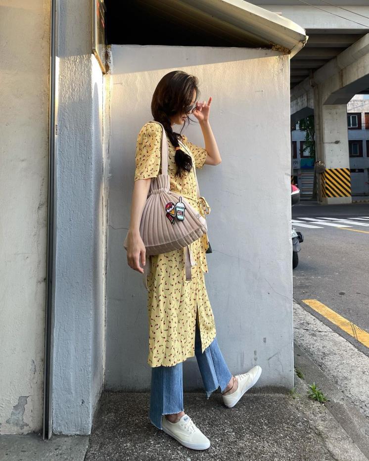 하나도 아닌 두 개의 니팅 백으로 멋을 냈다고? 손나은은 크로스 형식의 작은 니팅 백과 같은 컬러의 숄더백을 선택했다. 상큼한 옐로우 랩 원피스에 데님팬츠를 매치해 센스 있는 패셔니스타의 모습을 선보였다. 과하지 않은 소재의 가방인 만큼 두 개를 들어도 부담스럽지 않은 룩 완성!