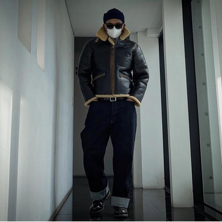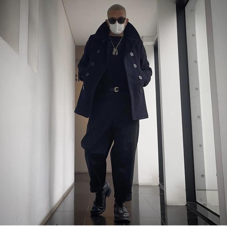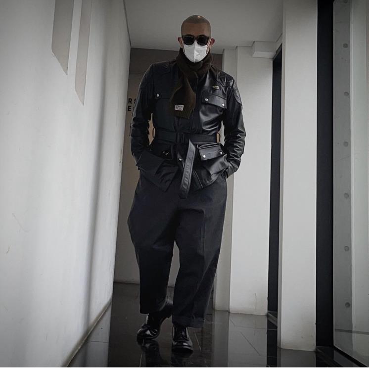 무스탕이나 레더재킷, 코트 등 시크한 아우터를 입을 때, 그는 주로 올블랙 룩을 선호해요!