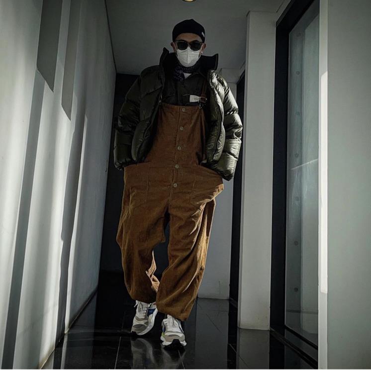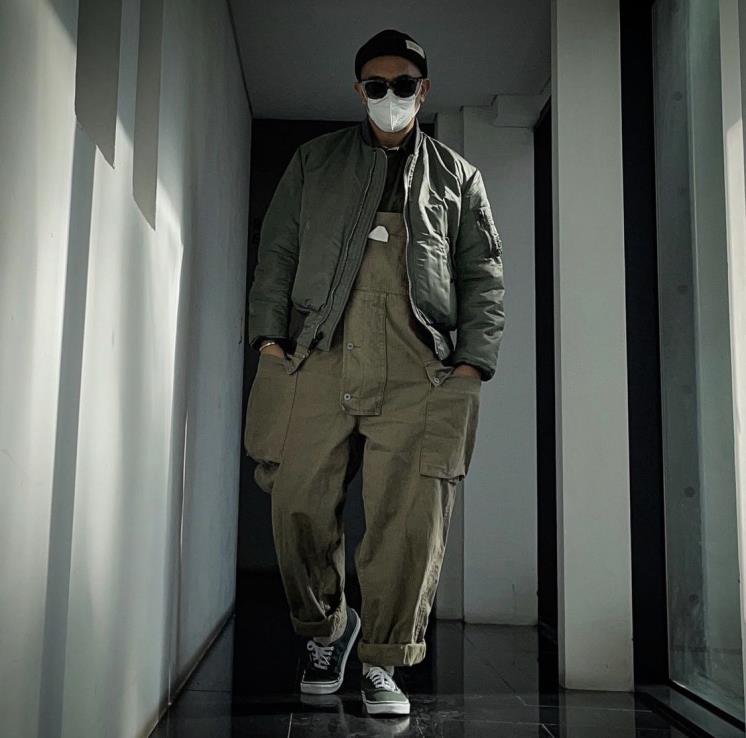 정말 다양한 오버롤을 보유하고 있는 듯한 구준엽. 그의 패션을 특별하게 만들어주는 아이템을 꼽으라면 단연 오버롤입니다. 그는 바지 밑단을 롤업해 스니커즈와 함께 매치해 캐주얼한 느낌을 살리기도 하고, 워커 부츠와 함께 매치해서 클래식한 워크웨어 룩을 연출하기도 하네요.