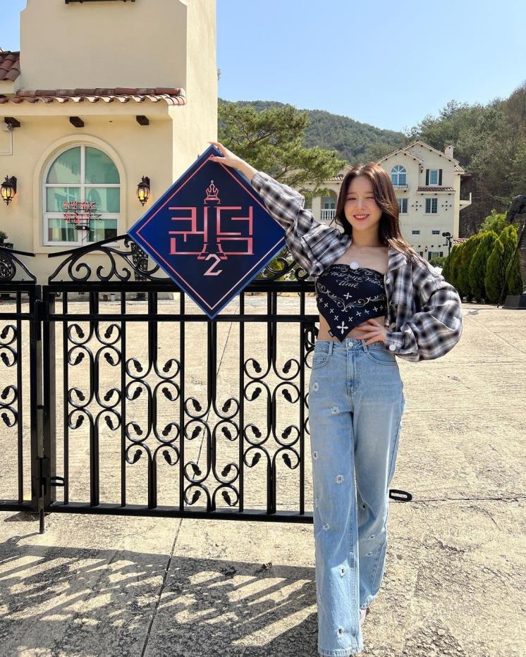 이달의 소녀 희진의 섹시하면서 귀여움까지 동시에 챙긴 스카프 톱 스타일링! 희진은 블랙 컬러 레터링 스카프를 톱으로 활용하며, 체크무늬 크롭 셔츠와 총 맞은 것 같은 비주얼의 구멍 뚫린 데님 팬츠를 매치해 다양한 매력을 뽐냈다.