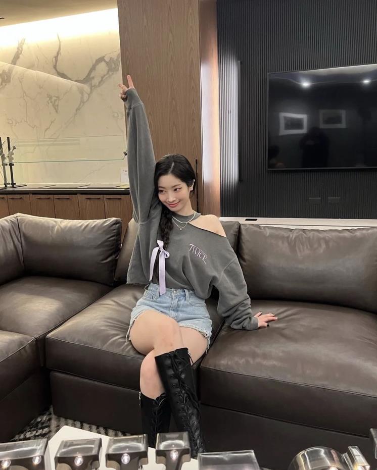 컷아웃 입문자라 아직 위의 화려한 컷아웃에 도전하기 망설여진다면? 다현의 컷아웃 맨투맨이 정답이 될 것. 다현은 오버사이즈 핏에 어깨에 컷아웃이 들어가 어깨 라인이 은근슬쩍 드러나는 맨투맨을 픽했다. 핏은 예쁘지만 조금 심심한 옷에 살짝쿵 컷아웃 디테일을 넣어보자!