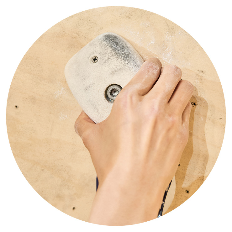 홀드를 꼬집듯 잡는 그립법으로 엄지와 나머지 손가락이 반대 방향으로 오게 한다.