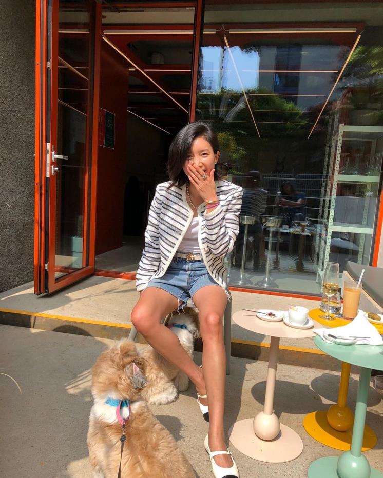 가희가 시크하게 올 블랙 패션을 선보였다면 또 다른 탠한 피부 소유자인 채정안은 화이트 탱크톱 패션을 공개했다. 이번 여름 트렌디한 아이템 중 하나인 화이트 탱크톱과 데님팬츠를 선택한 것! 탠한 피부와 새하얀 화이트 아이템이 만나 피부의 건강미는 더욱 올라가고 룩의 쿨함까지 더해지니 시도하지 않을 이유가 없다.