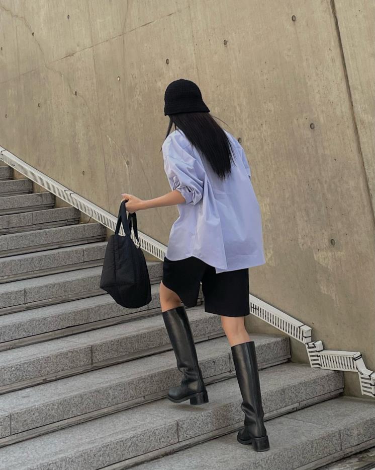 에스파의 지젤은 블랙 버킷햇과 블랙 상의를 매치해 선보였다. 모자와 상의의 컬러를 통일해 모자가 더욱 돋보이게 하는 매력적인 스타일링! 밝은 색의 버킷햇에 도전하기 전 블랙으로 버킷햇 입문 고고?