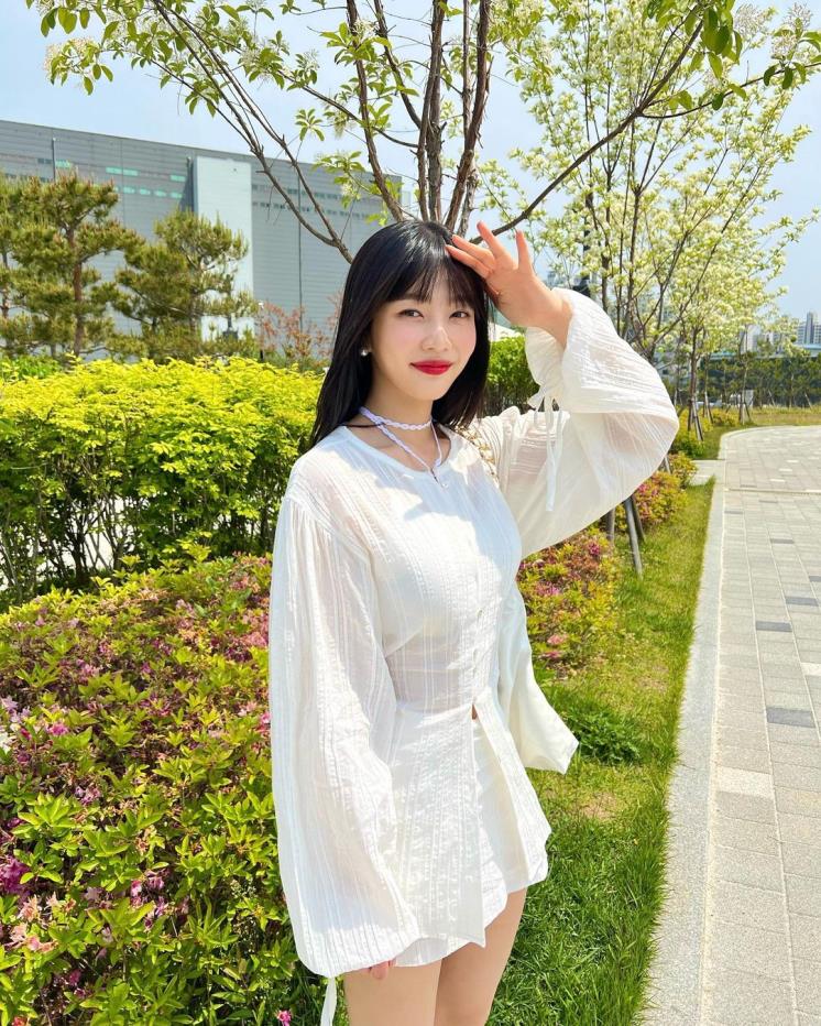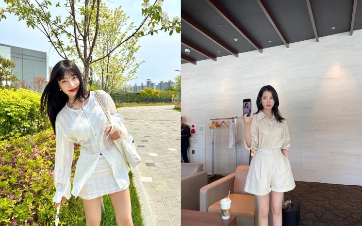 조이는 시어서커 소재의 올 화이트룩을 선보였다. 가볍고 땀과 열이 잘 배출되는 시어서커 소재는 여름의 대표적인 소재! 통풍이 잘되는 볼륨 소매를 선택해 피부 보호까지~여기에 초커, 가방도 모두 화이트로 매치해 화사 그 잡채 패션 완성!