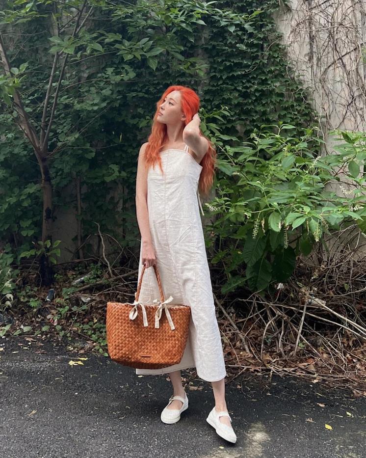 열이 올라요~ 뜨거운 사랑을 노래하고 있는 선미 또한 올 화이트룩을 놓치지 않았다. 선미는 화이트 원피스, 메리제인슈즈로 소녀미가 가득한 사랑스러운 룩을 완성! 위빙디테일 백을 매치해 여름 느낌 한 스푼 추가까지~