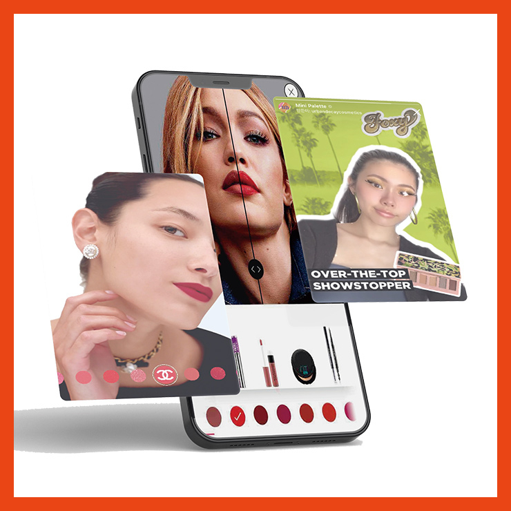 증강현실(AR)을 이용한 뷰티 쇼핑 도우미. 맥, 메이블린 뉴욕, 샤넬 등 많은 브랜드에서 AR을 통해 메이크업 버추얼 테스트를 가능케 하고, 자신의 퍼스널 컬러와 취향, 피부 타입에 따라 제품을 추천하는 잼페이스나 쀼티와 같은 애플리케이션 역시 이를 통해 솔루션을 제공한다. 만질 수 없는 실재를 나에게 적용하고 테스트해볼 수 있다는 장점이 있어 언택트 시대의 든든한 쇼핑 도우미로 발전 중! 비슷한 듯 다른 개념으로는 메타버스, 가상현실 뷰티 상품이 있다. AR이 체험이라면, 메타버스는 표현이다. 전혀 다른 세계관 속에 살고 있는 ‘나’를 단장하기 위해 제페토에서 나스, 헤라, 에뛰드 등 상품을 구입한다. 이는 실재를 가정한 실존을 체험하는 것으로 Z세대의 새로운 놀잇거리 중 하나로 자리 잡았다.