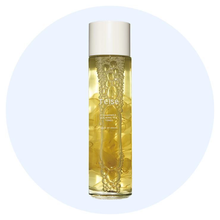 정제수 대신 캐머마일 추출물을 85% 담아 붉게 달아오른 피부를 순하게 진정시키는 비건 토너. 화장솜에 적셔 진정 팩으로 활용해도 좋다.