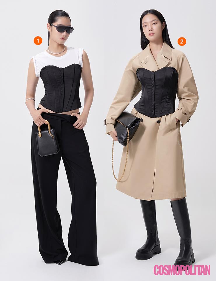 아우터 위에 코르셋을 두르는 발상의 전환을 해보자. 특별한 디자인의 아우터를 입은 것같이 보이는 동시에 극강의 세련된 룩을 즐기는 패션 고수로 거듭날 수 있으니 말이다.