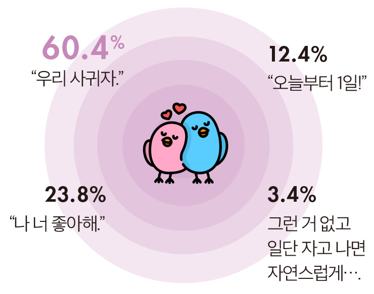 Q 썸에서 연애로 넘어갈 때 관계 정립 대화로 가장 적절한 것은?